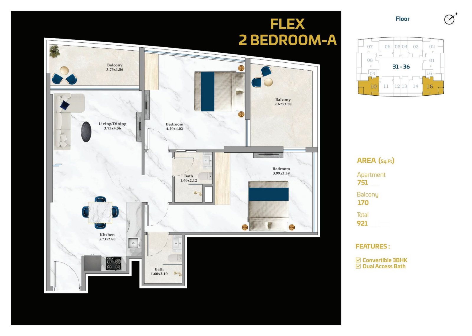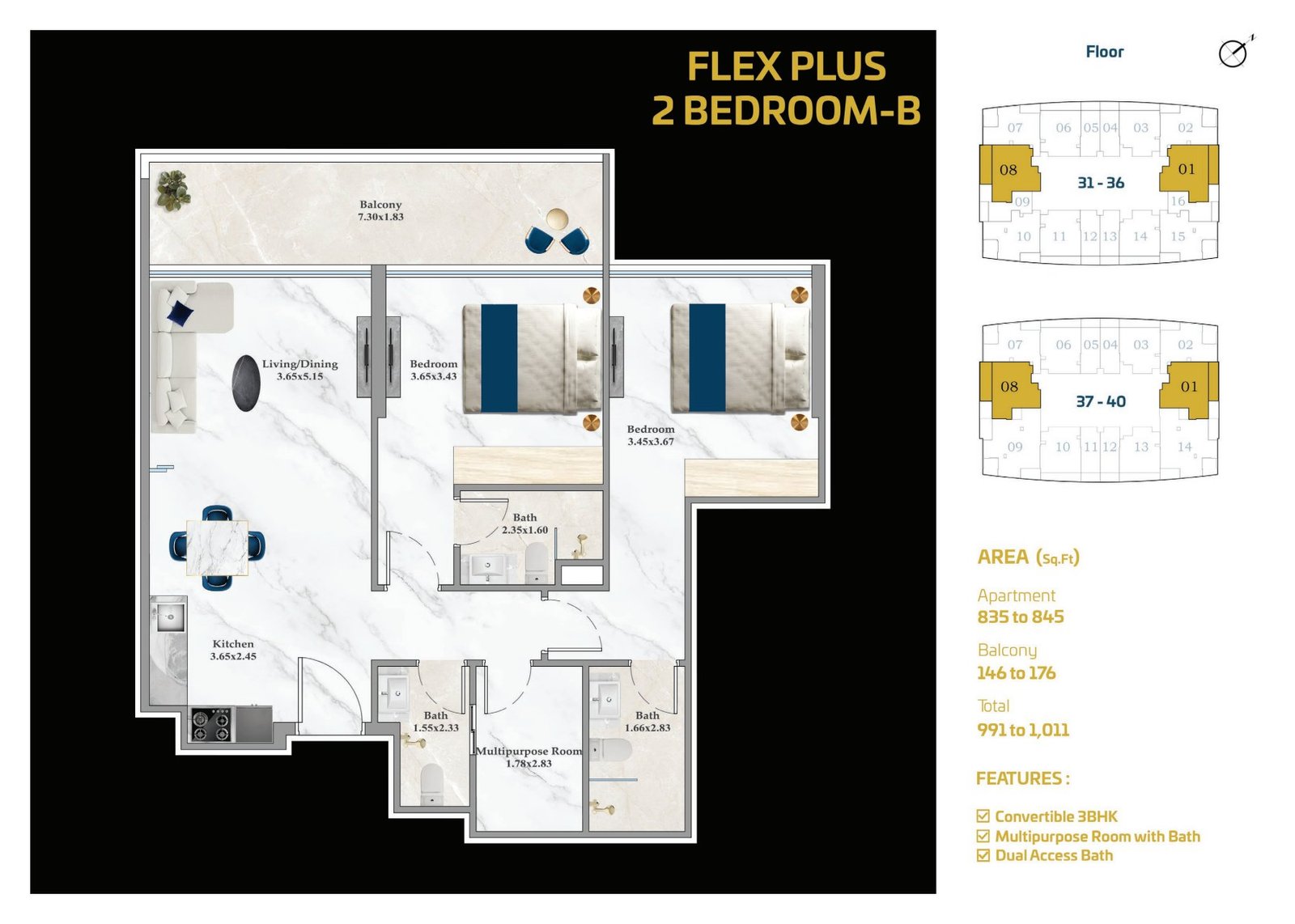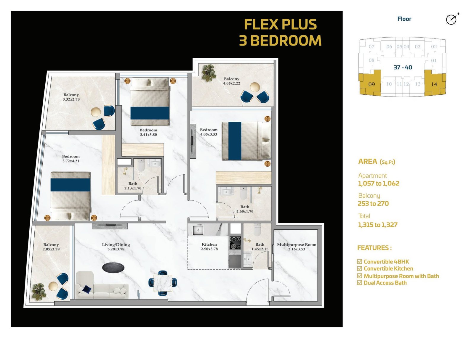Danube Aspriz combines modern design with community living—bringing you 1, 2 & 3 BHK apartments on a lush 9.5-acre master-planned estate. Enjoy thoughtfully curated spaces, world-class amenities, and seamless connectivity to Sharjah’s key districts.